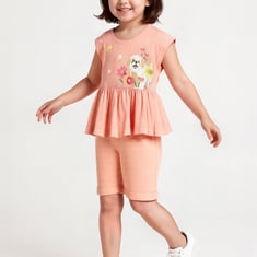 Girls Printed Shorts Set