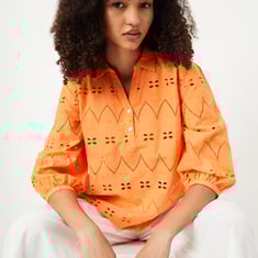 This Schiflli tunic is a timeless addition to your wardrobe. With a classic collared design, button placket, and 3/4th sleeves, it offers a refined, versatile look for any occasion.