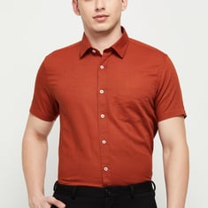 Men Solid Half Sleeves Slim Fit Casual Shirt