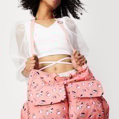 Perfect for travelling with infants, this diaper bag features cute all-over prints with flat handles and a detachable strap. It is designed with front flap pockets, side mesh pockets, a changing mat, and a spacious main compartment with multiple interior pockets.