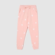 Add a hint of excitement to your little one's day with this pair of joggers. It features a drawstring waist, waist pockets, and heart prints along with a ribbed waist and cuffs.