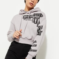 Slay your day with this sweatshirt. The hood and full sleeves with ribbed trim bring a cosy vibe. The prints add a unique flair, while the crop profile makes this sweatshirt pop.
