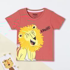 Roar into style and let the fun begin with this wildly adorable graphic-printed T-shirt. Jazz up your kid's casual wardrobe with its playful design, featuring half sleeves and a classic crew neck that’s perfect for adventures.