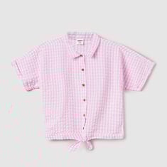Add some serious style to your little one's wardrobe with this checked shirt-style crop top! Featuring a classic spread collar, button placket, half sleeves, and a fun tie-up hem, it’s the perfect mix of chill and trendy.