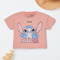 Show off your love for Disney with this Lilo & Stitch print T-shirt. Featuring a round neck and half sleeves, this comfy tee adds a quirky touch to your casual look with its vibrant print of the beloved characters.