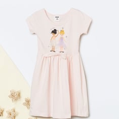 This A-line dress features soft tulle accents and a cute bow at the waist, finished with half sleeves and a round neck for a sweet, dressy look.