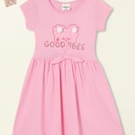 Make your kid's day brighter with this printed fit and flare dress. Complete with a charming bow detail, a round neckline, and comfortable half sleeves, it's perfect for any occasion.