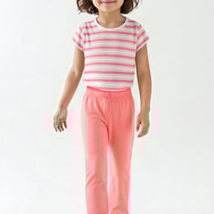 Keep her comfy and trendy with these ribbed full-length leggings featuring an elasticated waist for a secure fit and a lettuce hem for a playful touch.