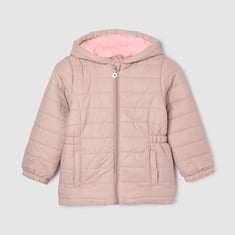 Girls Solid Quilted Hooded Jacket