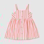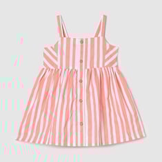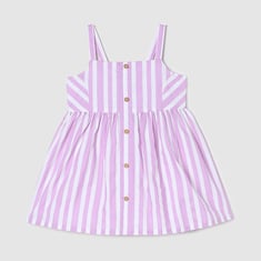 She’ll summer ready in this fit-and-flare dress. It features a striped pattern, shoulder straps, a square neckline, a button front, and a curved hem.
