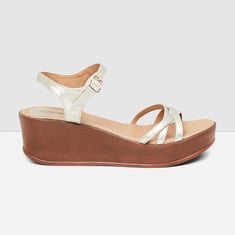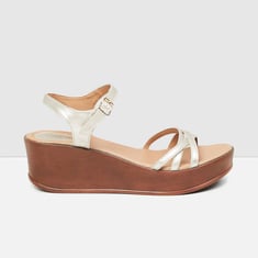 Detailed with a solid surface styling and an ankle-strap fastening, this pair of wedge heels is a must have for your casual footwear collection.