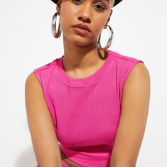 URB_N Women Textured Sleeveless Crop Top