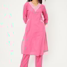 Women Embroidered Straight Kurta Set