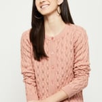 Cosy up your style with this cardigan featuring a knit pattern, round neckline, long sleeves, and ribbed trim.