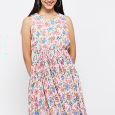 Flaunt a look of elegance in this fit and flare dress that is updated with all-over floral print. It is fashioned with a round neckline, sleeveless design, and a pleated skirt to create a flattering style.