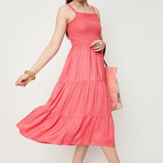 Women Smocked Tiered Midi Dress