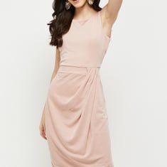 Amp up your fashion quotient in this solid dress that features a round neck with a sleeveless design in a sheath style. Pair this dress with a pair of nude footwear for optimal style.