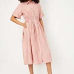 Effortlessly elegant, this solid smocked midi dress is a versatile addition to your wardrobe. Designed with a spread collar, button placket, half sleeves, and a smocked waist, it offers a flattering silhouette with a touch of classic charm.