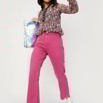 Make a bold statement in this pair of jeans that is rendered in a solid tone. Designed with a wide leg profile, this pair of jeans is designed with a belt loop waist, button and zip closure, and a five-pocket design. Complete the look with a floral top, a pair of sneakers, and an oversized tote.