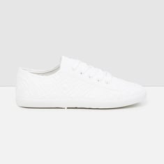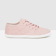 A pair of sneakers designed with a textured surface, lace-up fastening, and the soft soles provide comfort throughout the day.
