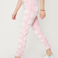Be stylish and comfortable wearing this pair of jeans. It comes with a tie and dye printed surface, button fly, belt loops, pockets, and cropped-length construction. Team it with a top and lace-up shoes to complete the look.