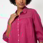 Embrace effortless elegance with this woven design tunic. Featuring a spread collar, three-quarter sleeves, and a smocked yoke, it combines comfort with style. The button placket adds a classic touch, making it perfect for both casual and dressed-up occasions.