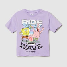 Upgrade your little munchkin's wardrobe with this hilarious T-shirt. With a crew neck and half sleeves, it's perfect for all their adventures. The Spongebob print on the front adds an extra dose of fun and whimsy.