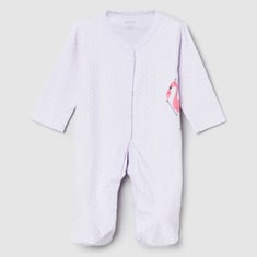 Tailored with the finest fabric, this printed sleepsuit is designed with full sleeves, a round neckline, and a button closure.