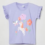 Brighten your little princess’s day with this top. It has a round neck, short sleeves with ruffled cuffs, and a straight hem. The cute prints and sequin accents lend a vibrant look.