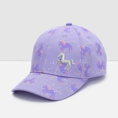 Add a magical flair to her summer look with this baseball cap. It is designed with 6 panels, a button accent at the top, unicorn prints and embroidery, and eyelets. The Velcro strap ensures a custom fit.