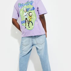 Embrace oversized comfort with this Rick & Morty-themed T-shirt. Featuring a crew neck and half sleeves, it offers a laid-back feel, perfect for casual days.