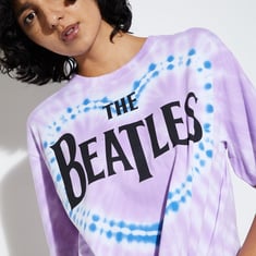 Elevate your street style and exude confidence with this T-shirt, boasting a tie & dye surface and 'The Beatles' print. Embrace its chic design to make a statement and showcase your unique swagger.