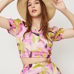 Add some fun and quirky floral to your summer wardrobe. This crop top features a wrap-front style, a charming floral print and puff sleeves for added style.