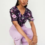 Breezy and elegant, this blouse is a perfect addition to your work wardrobe. It has a V-neck, all-over prints, riffled detailing, and puffed sleeves. Style this blouse with palazzos and block heels to ace the look.