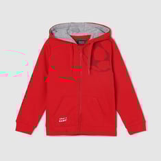 Keep your kids stylish and warm in this sweatshirt while they step out to play during the winter. It flaunts a graphic printed surface, a hooded neckline, and full sleeves. The best way to make his outfit stand out is to team it up with a pair of jeans and lace-up shoes.