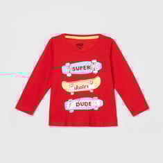 Add versatility to your little one's basic look with this casual printed t-shirt designed with a crew neckline and full sleeves.