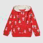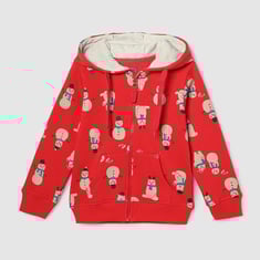 This sweatshirt will keep your kids warm and cosy while they go outside to play during the winter. It features an all-over snowman print, full sleeves, a hooded neck, pockets, zip closure and ribbed hem.