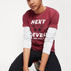 The layered sleeve design and graphic print at the front amplify the style of this basic T-shirt that is designed with a crew neckline.