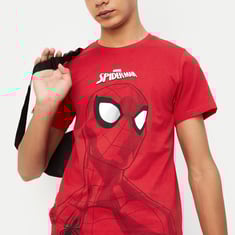 Style your little hero in his favourite superhero T-shirt featuring a crew neck, short sleeves, and a captivating Spiderman print