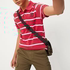 Your child's wardrobe will be spiced up by this striped polo T-shirt with a polo collar and short sleeves. Style it with some trainers and jeans.