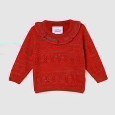 This sweater will keep your kids warm and stylish during the winter. It features a shimmery surface, full sleeves, a crew neck with a ruffle design and a ribbed hem.