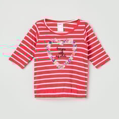 Girls Striped Round Neck T-shirt
