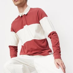 Men Striped Full Sleeve Polo T-shirt