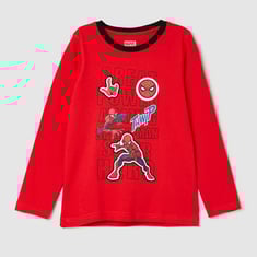 Amp up your child's style quotient with this spiderman printed t-shirt which has a crew neckline and full sleeves.