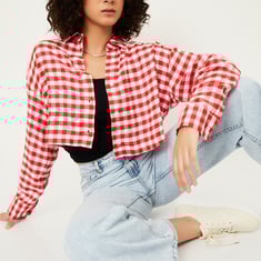 Women Checked Boxy Fit Crop Shirt