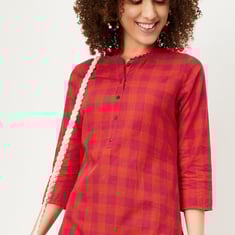 Women Checkered Cotton Kurta