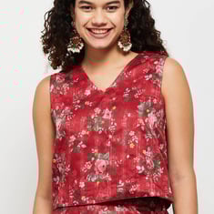 Highlighted with floral prints, this top crafted in a crop profile is fashioned with a V-neckline and a sleeveless profile. The product comes with additional sleeves. Complete your ethnic chic look by teaming this top with a matching skirt, a party clutch, and a pair of stilettos.