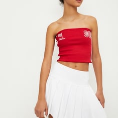 This printed sports tube top offers a bold and sporty style with its crop length, perfect for showcasing your active side. The vibrant print adds a playful touch to your workout or casual look.