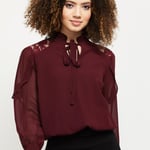 Update your wardrobe with this solid top, which is designed with full sleeves with lace inserts and a tie-up neck.