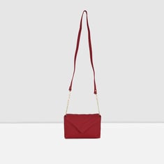 Ease your everyday carry in this handy sling bag that is designed in a solid woven style, coupled with a chain sling , a spacious compartment, with snap button closure.